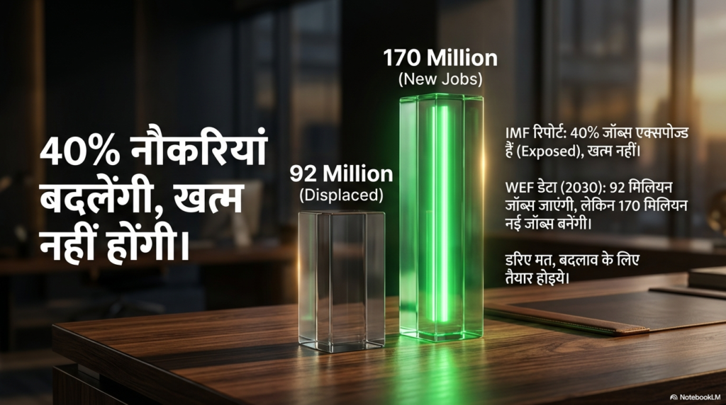 - इंसान की वैल्यू बढ़ेगी: इन्हीं 40% में से लगभग आधी नौकरियां ऐसी हैं जिन्हें AI से फायदा होगा। यानी जो इंसान आज बिना AI के काम कर रहा है, AI की मदद से वो और भी ज्यादा वैल्युएबल (Valuable) हो जाएगा।