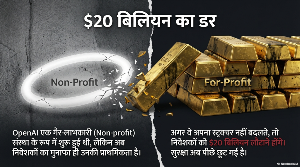 कहानी को थोड़ा पीछे से समझते हैं। OpenAI की शुरुआत एक ‘नॉन-प्रॉफिट’ (समाज सेवा के लिए) संस्था के रूप में हुई थी। लेकिन जैसे ही पैसा दिखना शुरू हुआ, सैम ऑल्टमैन और उनके साथियों ने इसे एक ‘फॉर-प्रॉफिट’ (मुनाफा कमाने वाली) कंपनी में बदलने का खेल शुरू कर दिया।