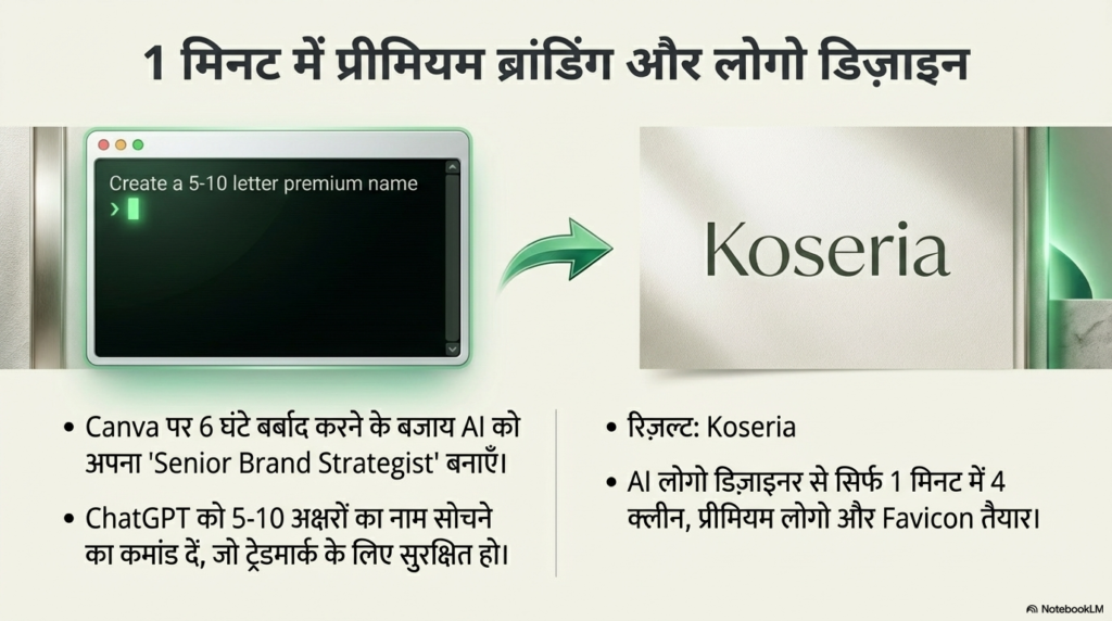 4. ब्रांडिंग का खेल: ‘Mega Prompts’ से नाम और लोगो तैयार करना