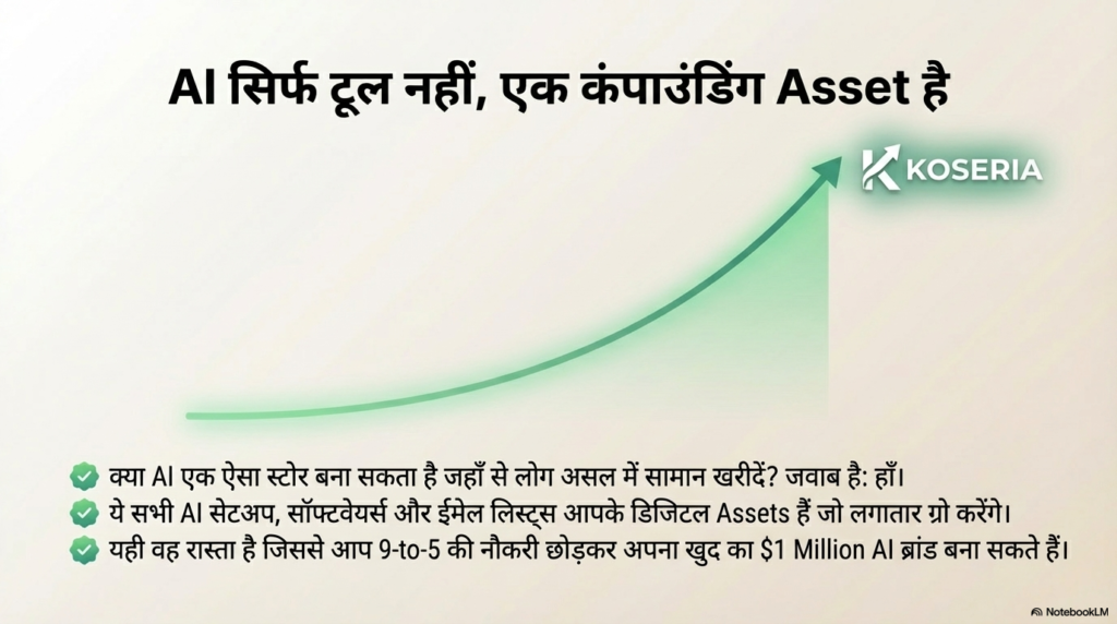 जो ‘Koseria’ ब्रांड आपने आज देखा, वो सिर्फ एक शुरुआत है। आने वाले 6 महीनों में इसे एक मिलियन-डॉलर ब्रांड बनाया जा सकता है। बस जरूरत है तो आपके पहले कदम की। तो उठिए, अपना पहला मेगा प्रॉम्प्ट लिखिए और अपनी डिजिटल यात्रा शुरू कीजिए।