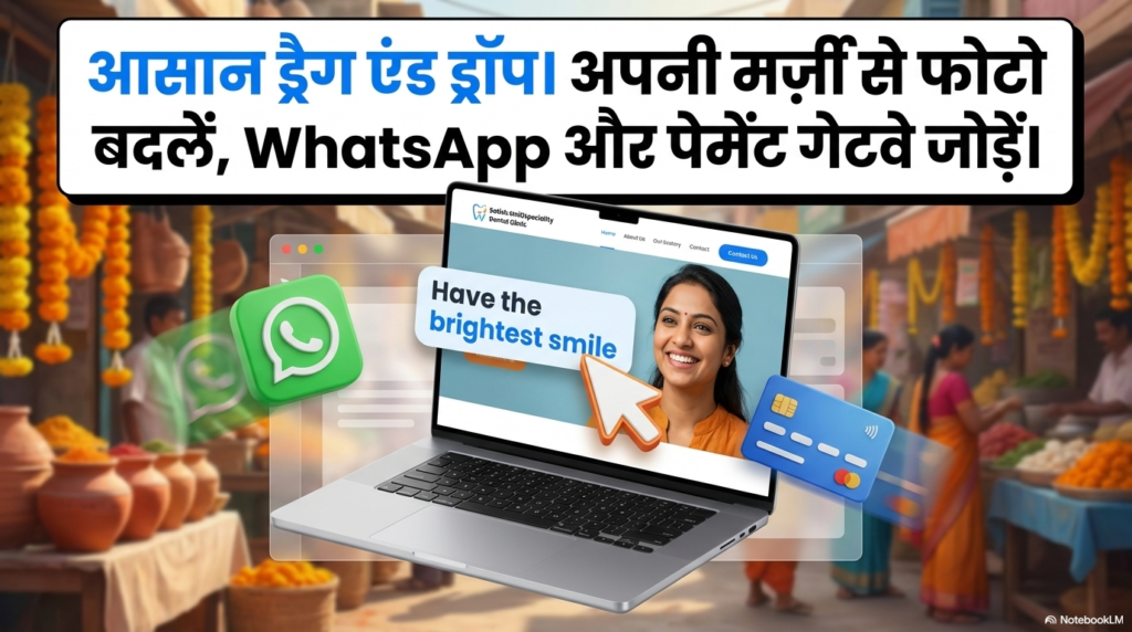 • SEO Tools: यह आपकी वेबसाइट को गूगल के सर्च रिजल्ट में ऊपर लाने में मदद करता है। जब कोई सर्च करेगा “Best Dentist in Koramangala”, तो आपकी बनाई वेबसाइट सबसे ऊपर दिखेगी।