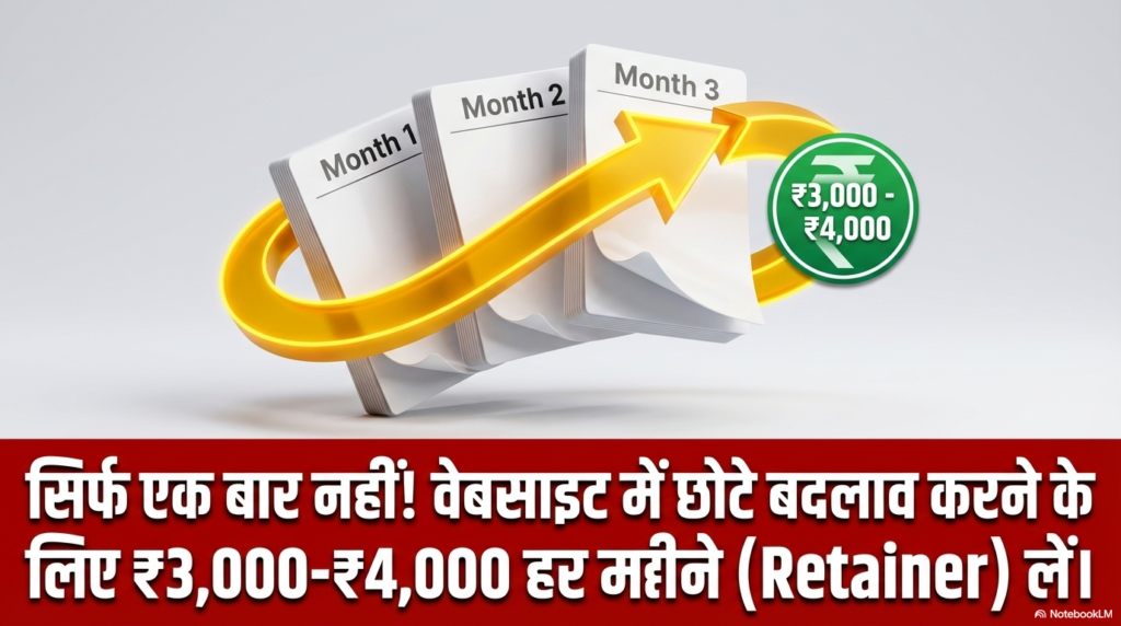 2. Monthly Retainer: उनसे कहिए— “सर, मैं हर महीने आपकी वेबसाइट अपडेट करूँगा, नए ऑफर्स डालूँगा और इसे मेंटेन रखूँगा। इसके लिए आप मुझे बस ₹3,000 महीना दे देना।”
