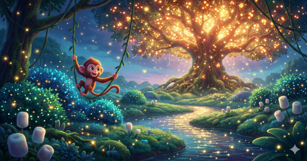 उदाहरण के लिए, यह वीडियो देखिए: “एक जादुई जंगल में छोटा सा बंदर गोलू खुशी से झूल रहा था तभी उसे एक अनोखी आवाज सुनाई दी चमकती झाड़ी के अंदर उसे लोमी मिली एक डरी हुई खोई हुई छोटी जुगनू गोलू मुस्कुराया और बोला “मैं तुम्हें घर पहुंचाऊंगा ” दोनों हंसती नदी और मुलायम मैंगो मार्शमेलों के बीच से गुजरे आखिरकार वे ग्लोबेरी ट्री पहुंचे जहां हजारों जुगनू सितारों की तरह चमक रहे थे लमी ने गोलू को चमकती बाहों से गले लगाया तुम मेरे हीरो हो उसने फुसफुसाया”। यह पूरा वीडियो इसी AI टूल से बिलकुल मुफ़्त में बनाया गया है।