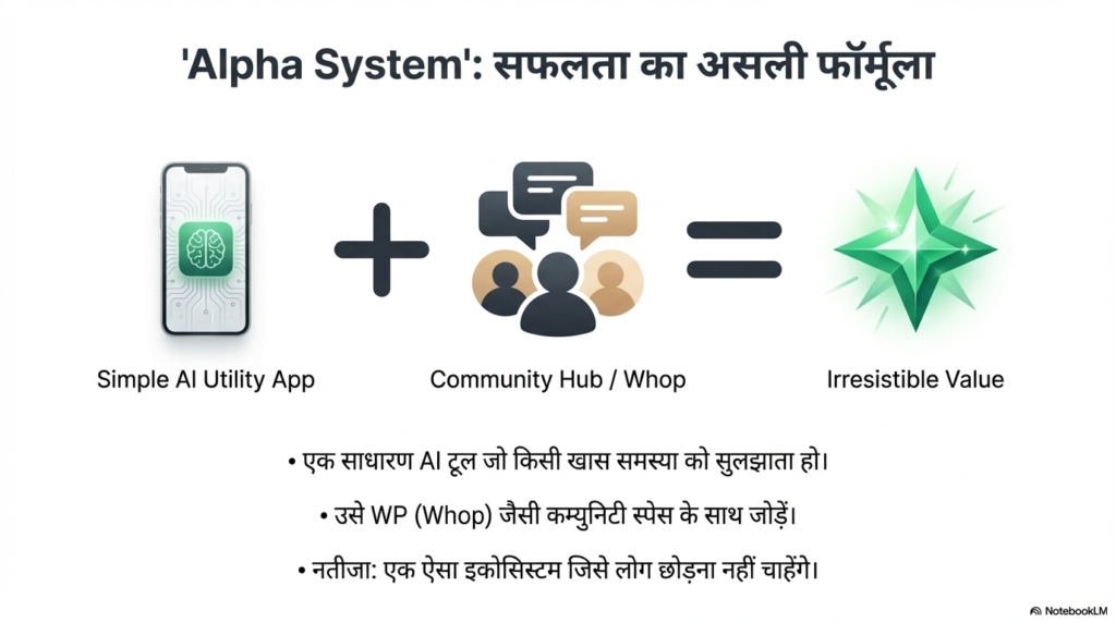 इसे एक देसी मिसाल से समझते हैं। सोचिए एक रेहड़ी वाला है जो सुनसान सड़क पर खड़ा है (यह आपका अकेला ऐप है), और दूसरी तरफ एक आलीशान दुकान है जो शहर की सबसे व्यस्त ‘सब्जी मंडी’ या ‘पालिका बाज़ार’ के अंदर है। मंडी में ग्राहक पहले से ही मौजूद हैं, वे वहां कुछ न कुछ खरीदने ही आए हैं। “Alpha System” यही करता है—यह आपके टूल को एक ऐसी ‘मंडी’ (Marketplace) में रखता है जहां लाखों लोग पहले से ही समाधान ढूंढ रहे हैं। यह सिर्फ एक ऐप नहीं, बल्कि एक पूरा “Community Hub” है जहां ग्राहक को भरोसा, ट्रेनिंग और बातचीत करने की जगह मिलती है।