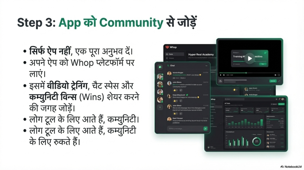 जैसा कि मैंने पहले कहा, अकेला ऐप इंटरनेट के समंदर में खो जाएगा। आपको इसे एक ‘वैल्यू पैकेज’ बनाना होगा। इसके लिए लियम ने WOP (World of Products) नाम के प्लेटफॉर्म का इस्तेमाल किया। यह एक ऐसा हब है जहां आप अपने ऐप को कम्युनिटी के साथ जोड़ सकते हैं।