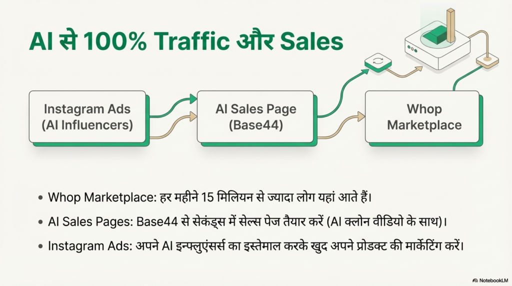 आजकल इंस्टाग्राम पर जो विज्ञापन (Ads) आप देखते हैं, उनमें से कई असली इंसान नहीं बल्कि ‘AI Influencers’ होते हैं। लियम इन अवतारों का इस्तेमाल करके एड्स चलाते हैं। उनकी सेल्स वेबसाइट पर उनका खुद का एक AI क्लोन बैठा है जो 24 घंटे आने वाले ग्राहकों को प्लान समझाता रहता है।