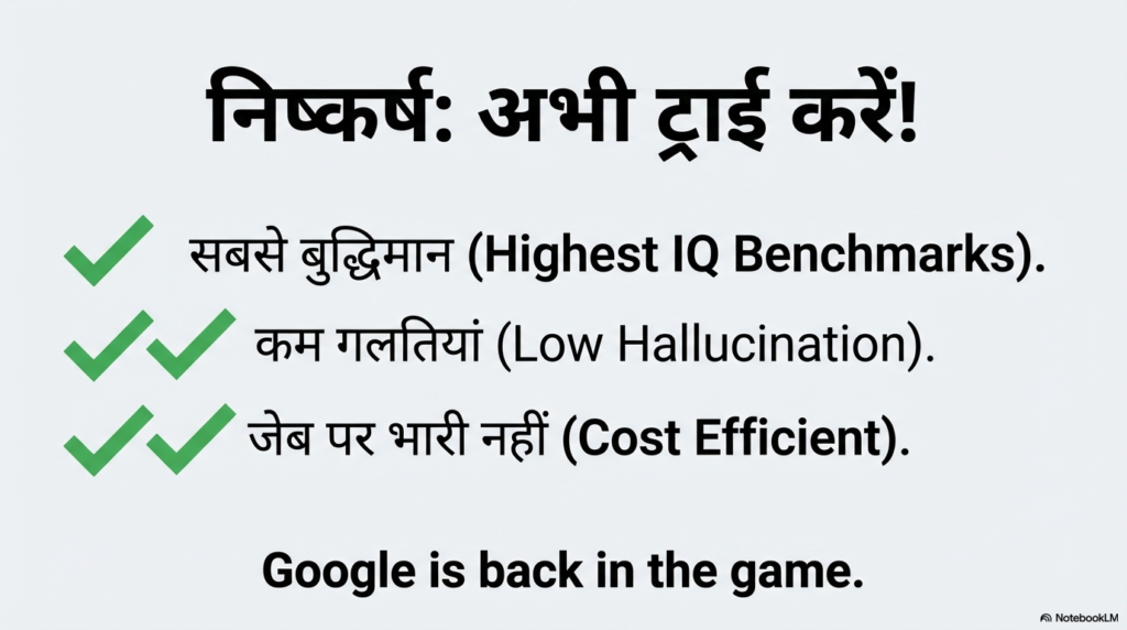 यहाँ Gemini 3.1 Pro ने “Dimaag lagaya” और उन पैटर्न्स को खुद समझा। इसे टेक्नोलॉजी की भाषा में “Emergent Ability” कहते हैं—यानी मशीन का खुद से नया हुनर सीख लेना।