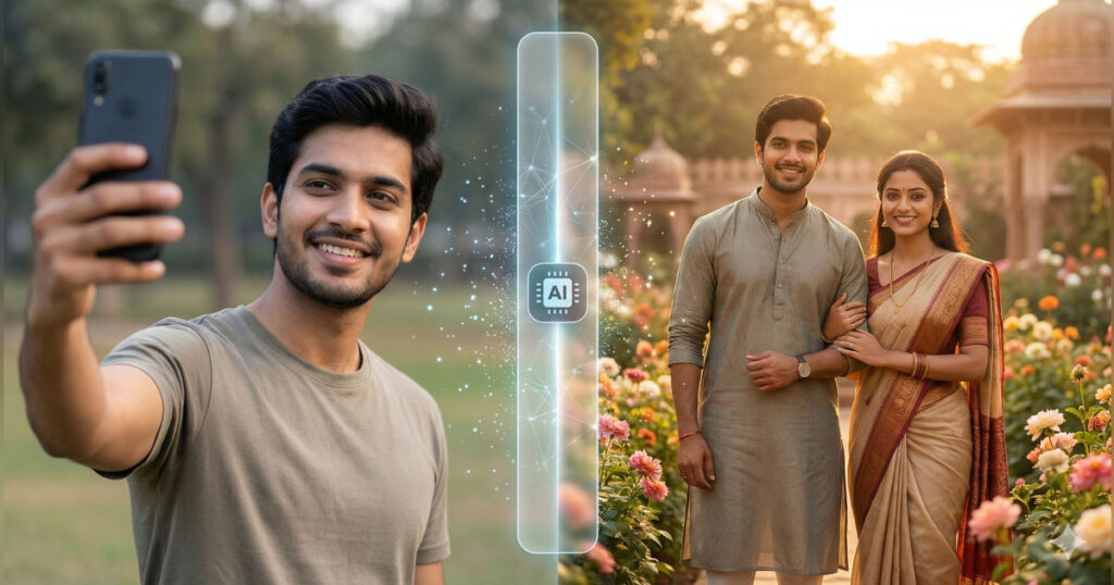 सोशल मीडिया पर आजकल AI से बनी कपल फोटोज का ट्रेंड छाया हुआ है। आपने भी ज़रूर देखी होंगी और सोचा होगा कि ये बनती कैसे हैं? अगर हाँ, तो आप बिल्कुल सही जगह पर हैं!