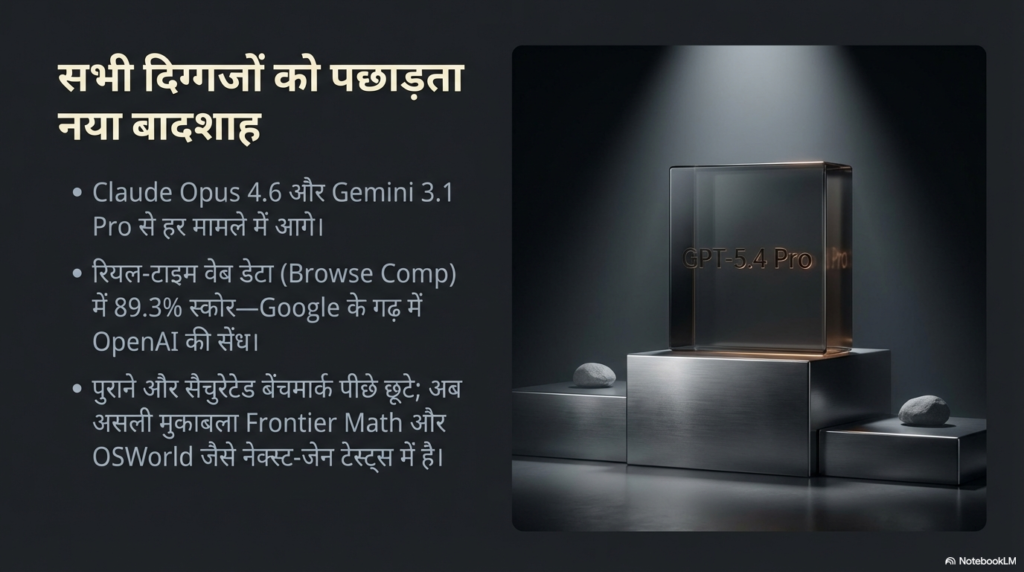 इसकी सबसे बड़ी खूबी यह है कि इसने प्रतिद्वंद्वी कंपनियों के उन दावों की हवा निकाल दी है जो वे महीनों से कर रहे थे। इसने Anthropic के सबसे शक्तिशाली मॉडल Claude 4.6 को लगभग हर मोर्चे पर पीछे छोड़ दिया है। सबसे चौंकाने वाली बात तो यह है कि इसने Google के Gemini 3.1 को उन पैमानों पर भी मात दे दी है जहाँ Google का एकाधिकार माना जाता था। टेक की भाषा में कहें तो Gemini 3.1 को ‘स्टेट-ऑफ-द-आर्ट’ (दुनिया में सबसे बेहतरीन) माना जा रहा था, लेकिन GPT-5.4 Pro ने आकर खेल ही बदल दिया।