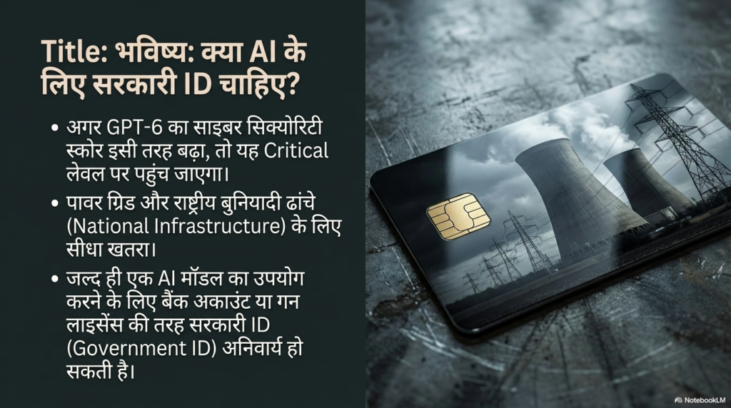 भविष्य की चेतावनी: विशेषज्ञों का कहना है कि अगर GPT-6 या GPT-7 इसी रफ्तार से आगे बढ़े, तो वे “Critical” रिस्क के स्तर पर पहुँच जाएंगे। तब ये मॉडल किसी देश के पावर ग्रिड या वाटर सप्लाई सिस्टम को भी ठप कर सकेंगे। जैसे आज आपको गाड़ी चलाने के लिए ‘ड्राइविंग लाइसेंस’ या हथियार रखने के लिए ‘आर्म्स लाइसेंस’ चाहिए होता है, भविष्य में AI चलाने के लिए शायद आपको अपनी ‘आधार आईडी’ या पहचान पत्र का इस्तेमाल करना पड़े। सुरक्षा अब एक बहुत बड़ा मुद्दा बन गई है।