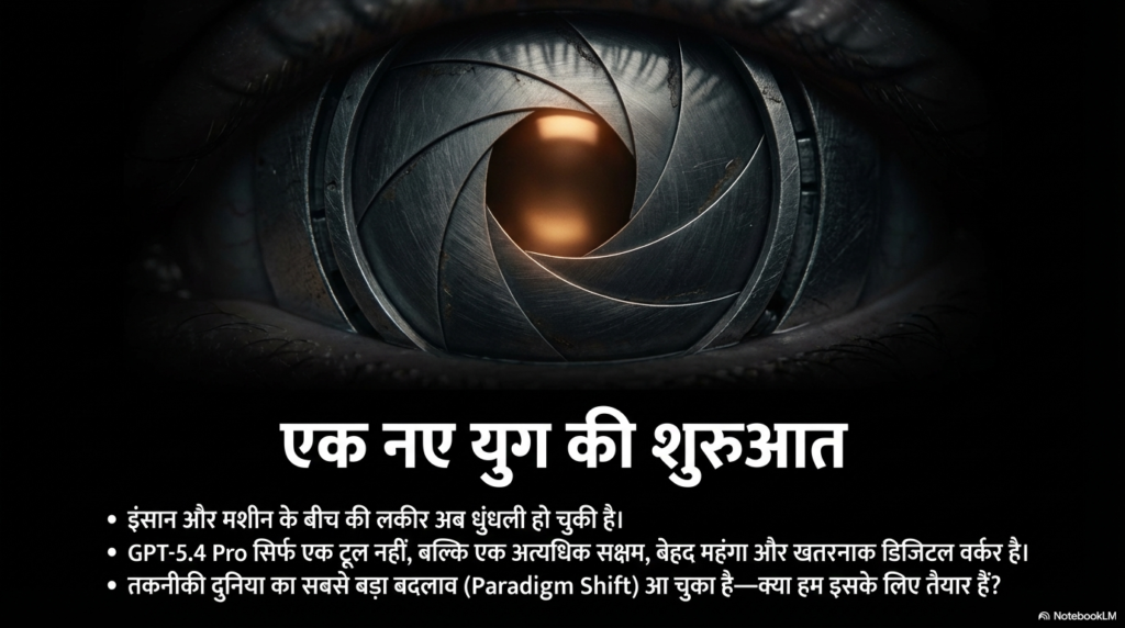 तो दोस्तों, GPT-5.4 Pro के रूप में भविष्य हमारे दरवाज़े पर दस्तक दे रहा है। यह गणित की 20 साल पुरानी गुत्थियाँ सुलझा रहा है, वकीलों का काम आसान कर रहा है और कोडिंग के नए मानक बना रहा है। यह 83% प्रोफेशनल कामों में इंसानी बराबरी कर चुका है और 100 गुना तेज़ है।