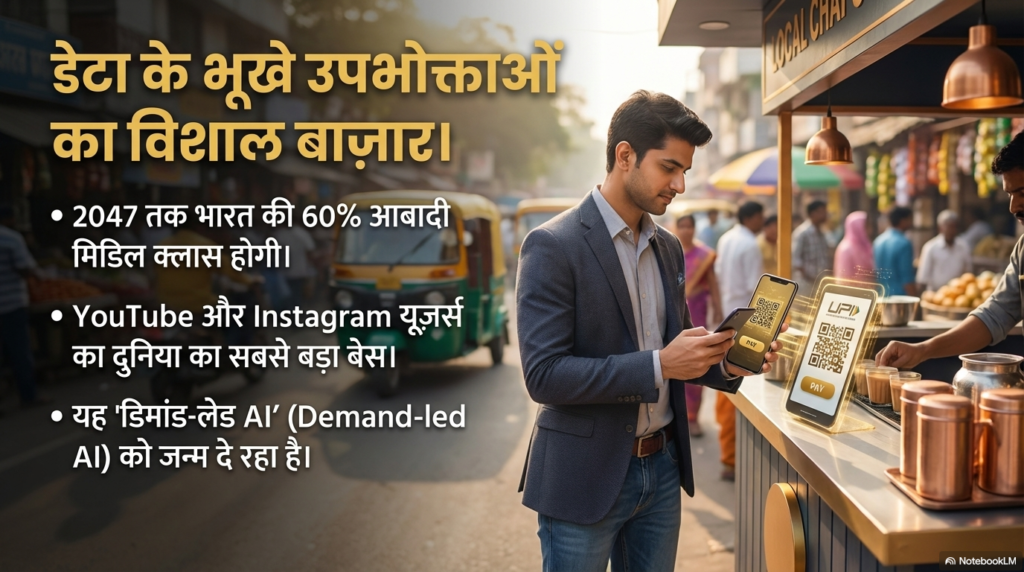 यही ‘डिमांड’ टेक कंपनियों को भारत खींच लाती है। भारत पहले से ही YouTube और Instagram का सबसे बड़ा यूजर बेस है। जब इतनी बड़ी आबादी AI ऐप्स मांगेगी, तो कंपनियों को मजबूरन भारत में ही ‘डेटा सेंटर्स’ बनाने होंगे और यहीं के हिसाब से तकनीक विकसित करनी होगी। इसे कहते हैं ‘डिमांड-लेड AI’—यानी जरूरत ही आविष्कार की जननी बनेगी।