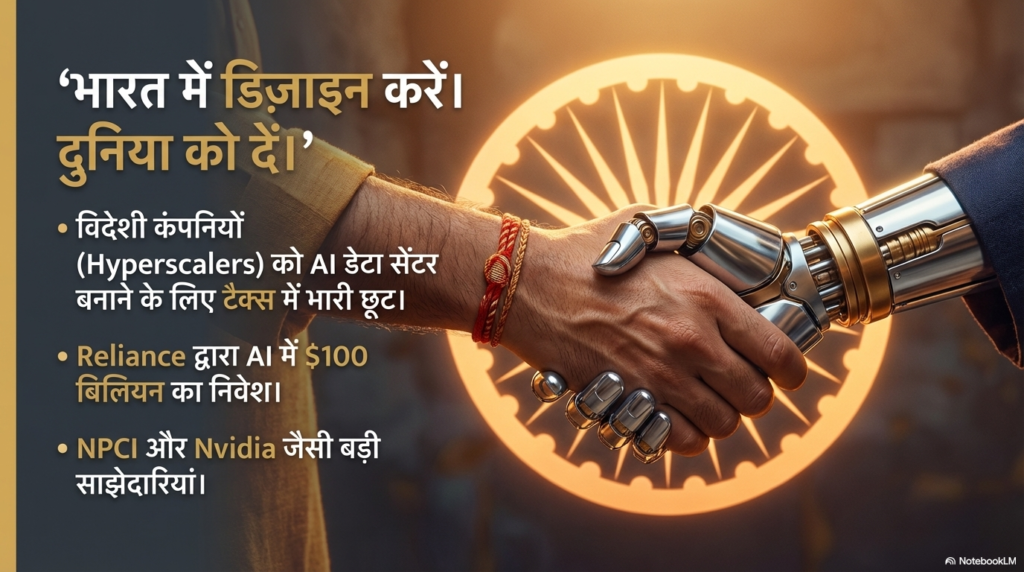 प्रधानमंत्री नरेंद्र मोदी का विजन “डिजाइन और डेवलप इन इंडिया, डिलीवर टू द वर्ल्ड” इसी दिशा में एक बड़ा कदम है। सरकार विदेशी कंपनियों को टैक्स छूट का लालच दे रही है ताकि वे अपने सर्वर भारत में लगाएं, जिससे हमारी ‘डेटा संप्रभुता’ भी बची रहे और हमें लेटेस्ट तकनीक भी मिले।