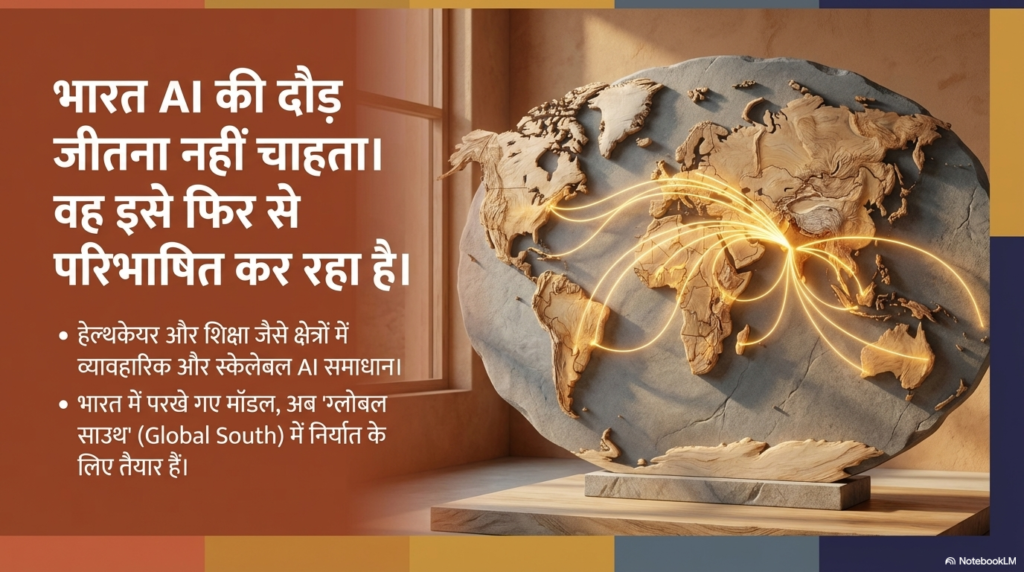 एक बार जब ये ‘सस्ते और टिकाऊ’ AI समाधान भारत के मुश्किल बाजार में सफल हो जाएंगे, तो इन्हें पूरे ‘ग्लोबल साउथ’ (अफ्रीका, दक्षिण-पूर्वी एशिया और लैटिन अमेरिका) में एक्सपोर्ट किया जा सकेगा। भारत AI का वो ‘किफायती डॉक्टर’ बनना चाहता है जो पूरी दुनिया का इलाज कर सके।