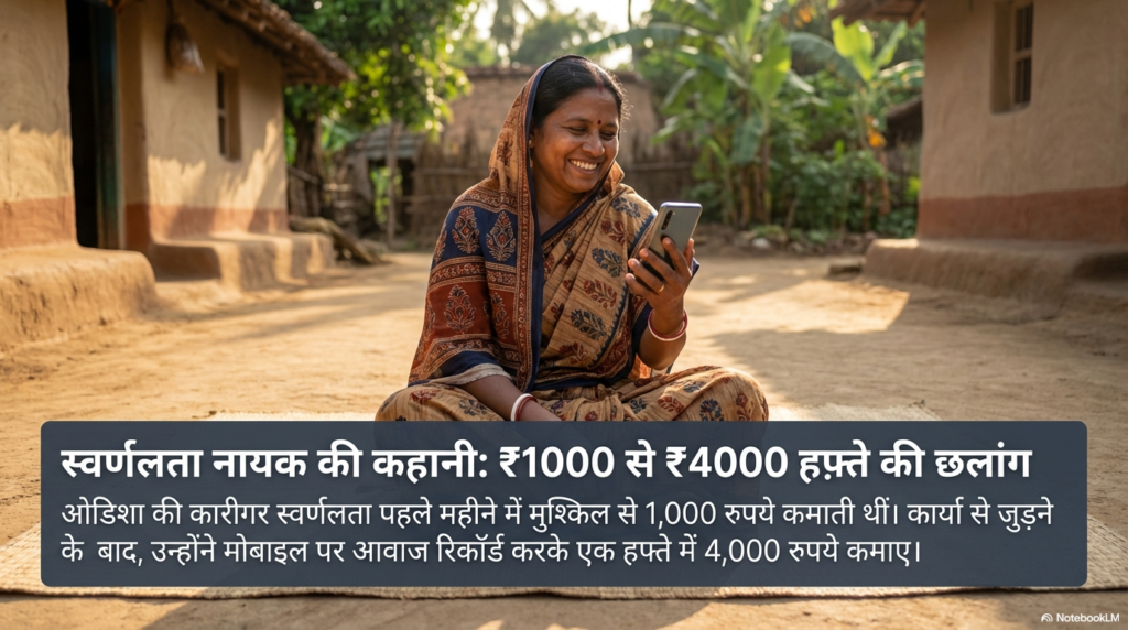 लेकिन जब उन्हें ‘कार्या’ प्रोजेक्ट के बारे में पता चला, तो उनकी किस्मत ने ऐसी पलटी मारी कि गांव वाले भी दंग रह गए। स्वर्णलता ने अपने मोबाइल फोन पर अपनी स्थानीय ओडिया भाषा में आवाजें रिकॉर्ड करना शुरू किया। नतीजा क्या हुआ? जो महिला महीने भर में ₹1,000 के लिए तरसती थी, उसने सिर्फ एक हफ्ते के काम से ₹4,000 कमा लिए। यानी महीने की कमाई अब एक हफ्ते में हो रही थी! आज स्वर्णलता जैसी हजारों महिलाएं इस ऐप के जरिए आर्थिक रूप से आजाद हो रही हैं और अपने परिवार को एक बेहतर जिंदगी दे रही हैं। यह सिर्फ पैसों की बात नहीं है, यह उस “सम्मान” की बात है जो एक आत्मनिर्भर महिला को समाज में मिलता है।