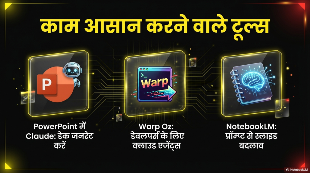 - PowerPoint का उस्ताद: अब आप सीधे Claude से कह सकते हैं, “भाई, मेरे लिए इस टॉपिक पर एक पूरी स्लाइड डेक बना दे,” और वह तैयार कर देगा।