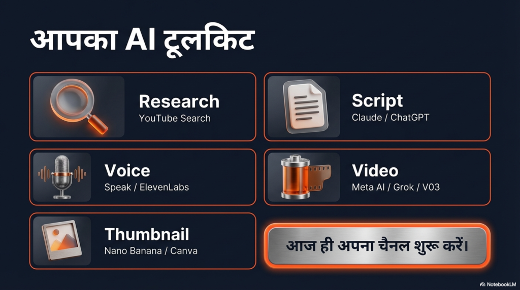 - नकल के लिए अकल: आपको बस AI टूल्स का सही इस्तेमाल करना सीखना है। स्क्रिप्ट से लेकर वीडियो और आवाज़ तक, सब AI बना देगा।